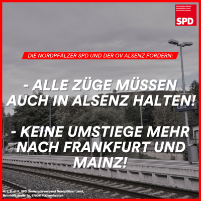 Gemeinsam mit dem SPD Ortsvserein Alsenz werden heute Nachmittag Flugblätter mit den genannten Forderungen verteilt und der Druck auf die entsprechenden Stellen erhöht.